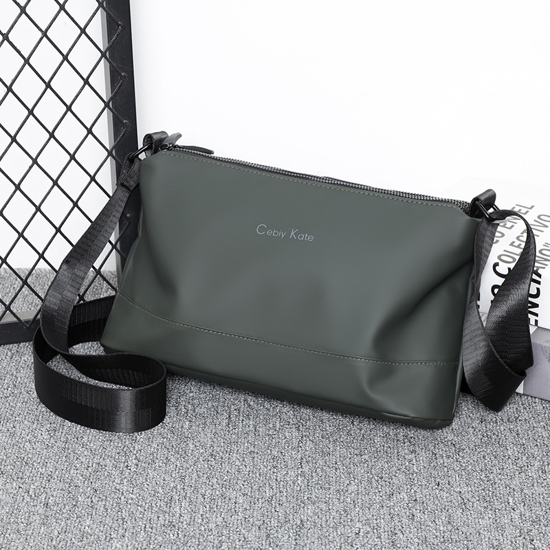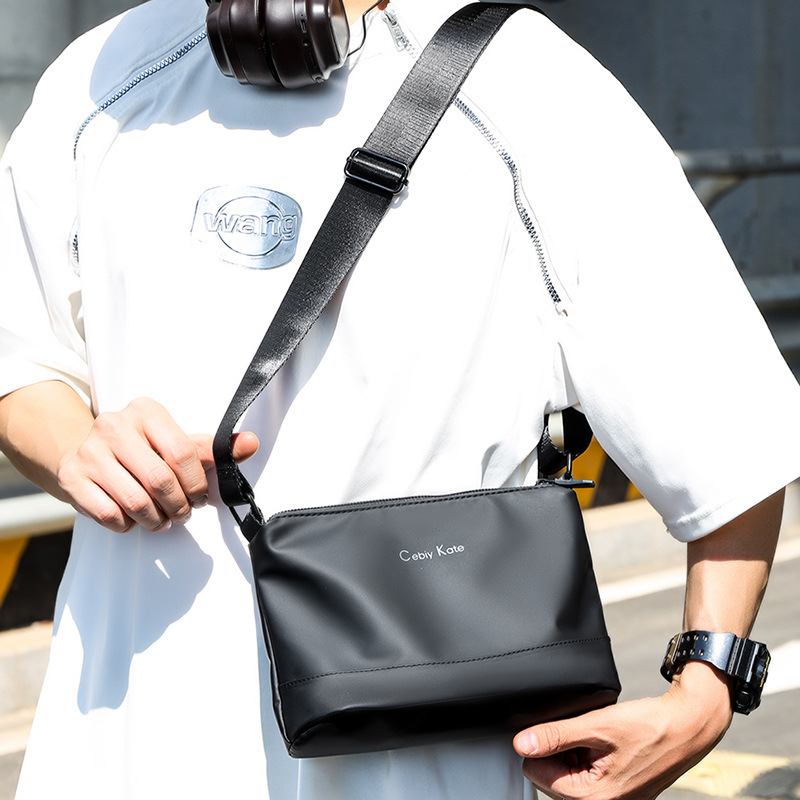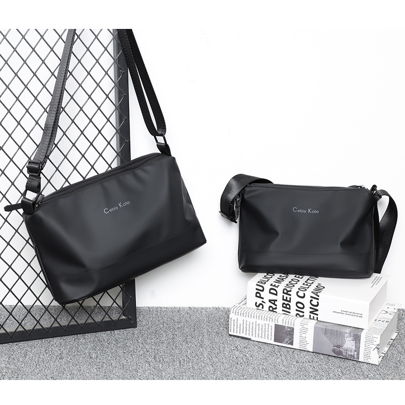 皮膜布男士斜挎包2025新款商务通勤单肩包防水背包横款休闲男包