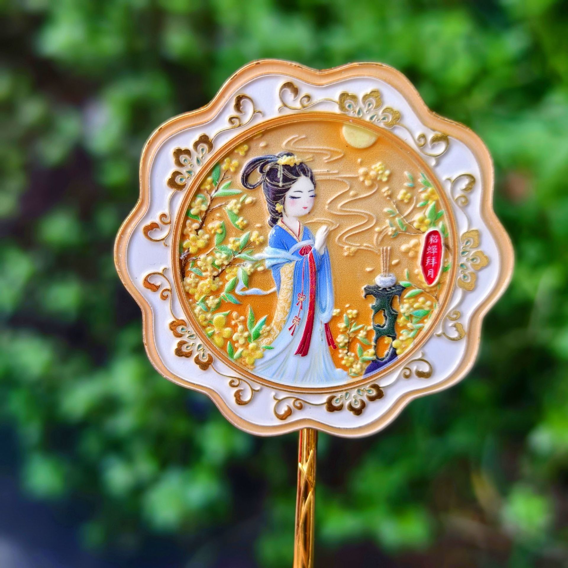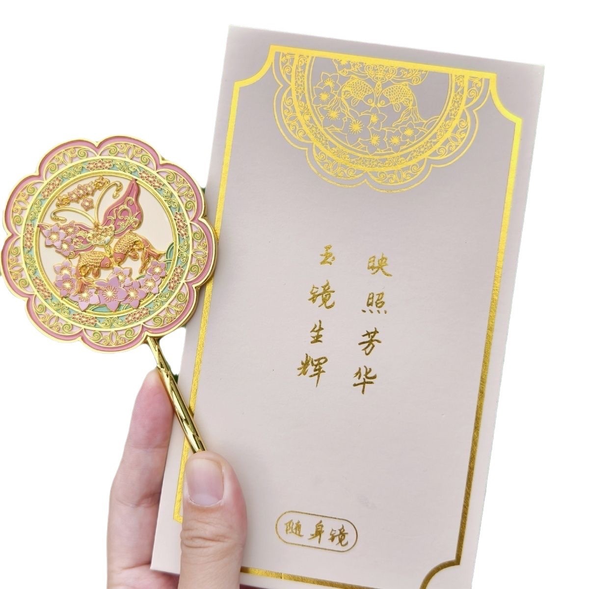 厂家直销金属浮雕古风随身镜春夏秋冬四大美女中式随身手持化妆镜