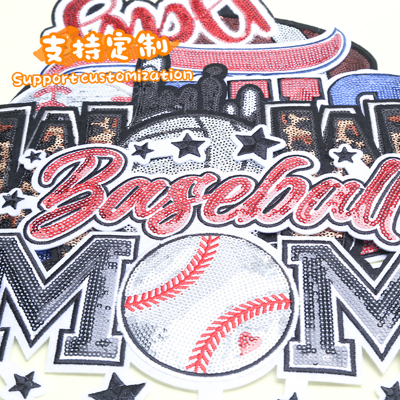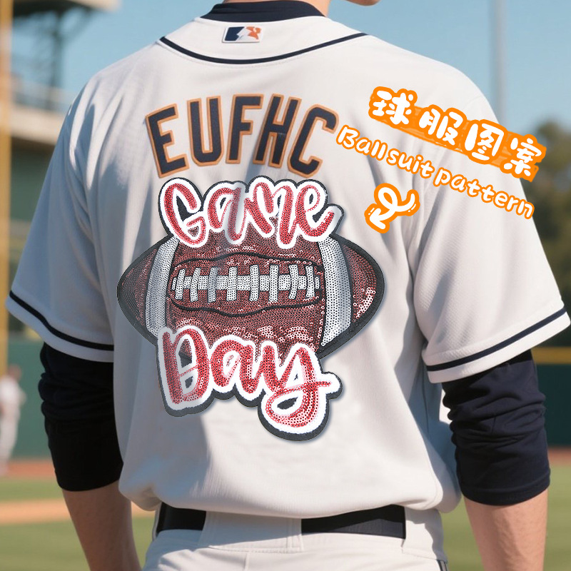 跨境热销球队橄榄球大号免缝服装辅料补丁布贴刺绣亮片百搭绣花章