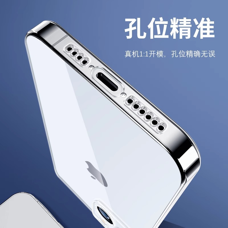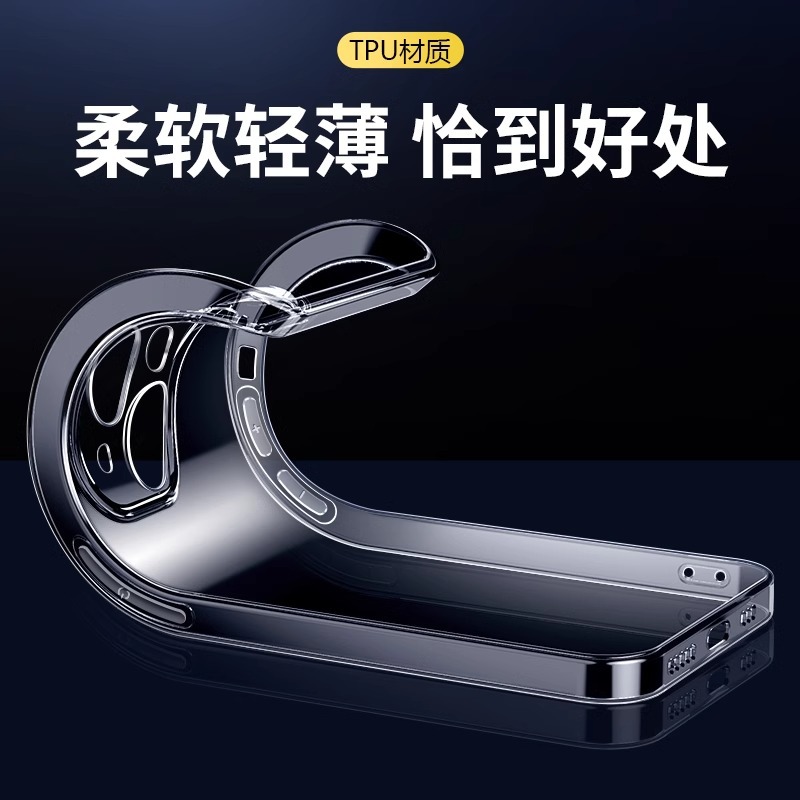 适用于苹果16透明手机壳15promax绿卡高透精孔1.5MMtpu软壳