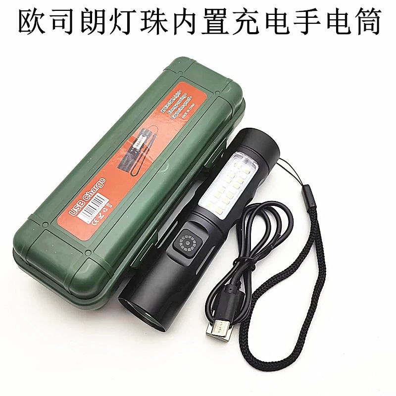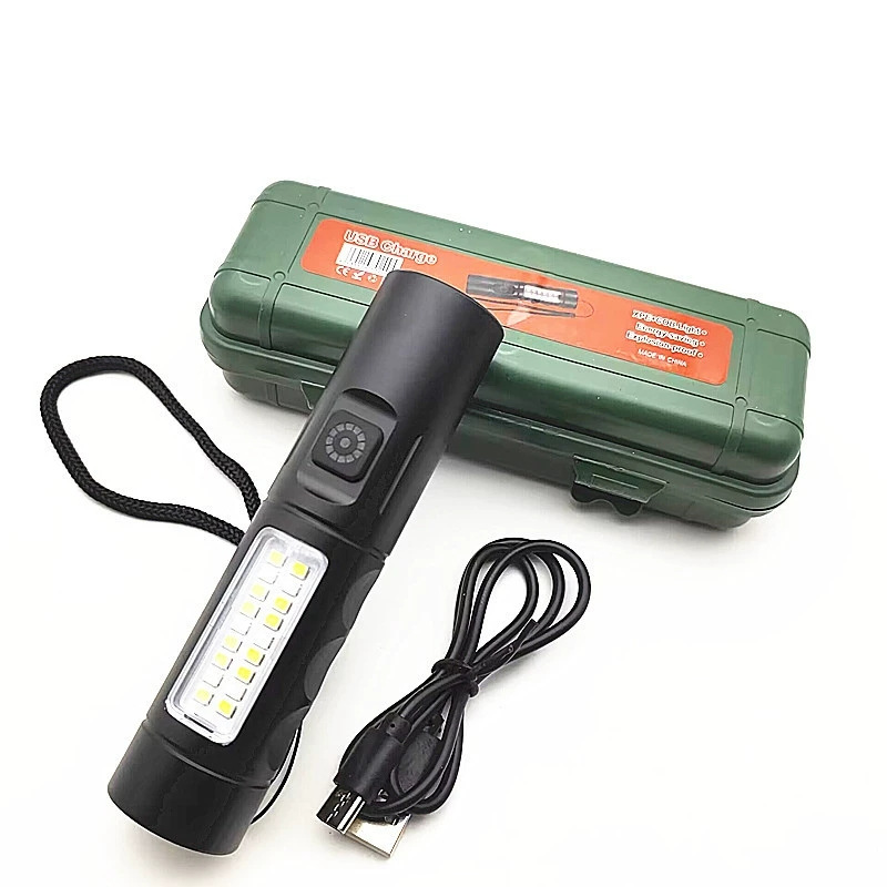 批发LED铝合金强光手电筒 内置锂电池TYPE-C充电带侧灯照明手电筒