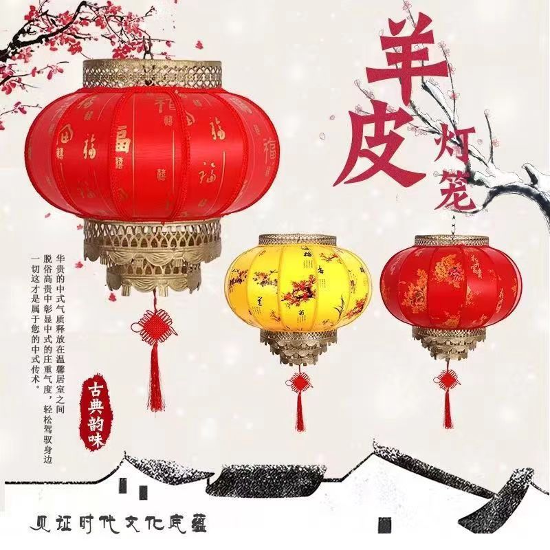 批发羊皮灯笼户外防水广告印字春节阳台大门装饰喜庆大红圆形宫灯