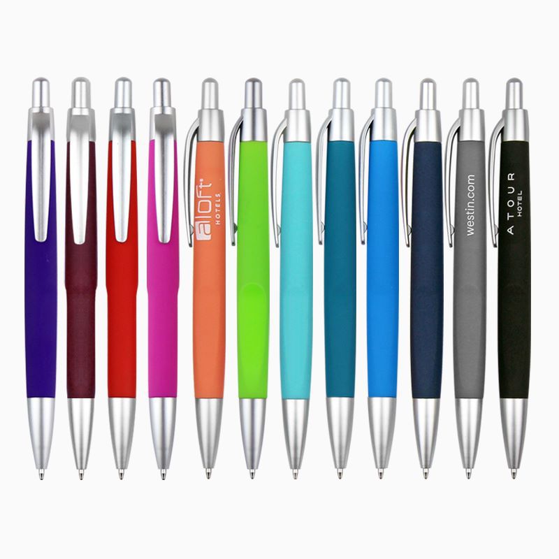 商务礼品笔杆彩色喷胶圆珠笔logo按动广告笔酒店会议