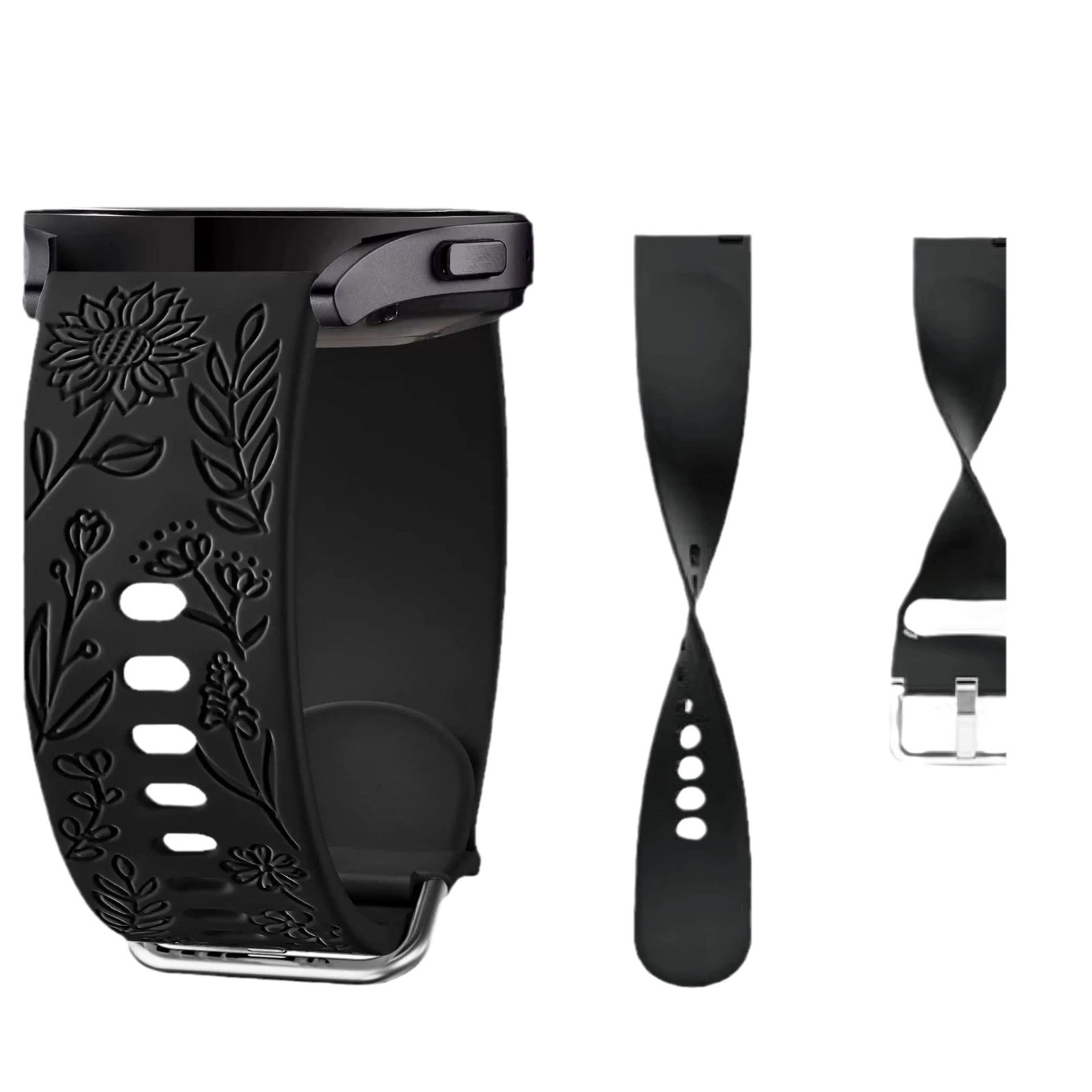 适用三星/华为/向日葵单色雕花三星扣现货运动硅胶手表防水表带