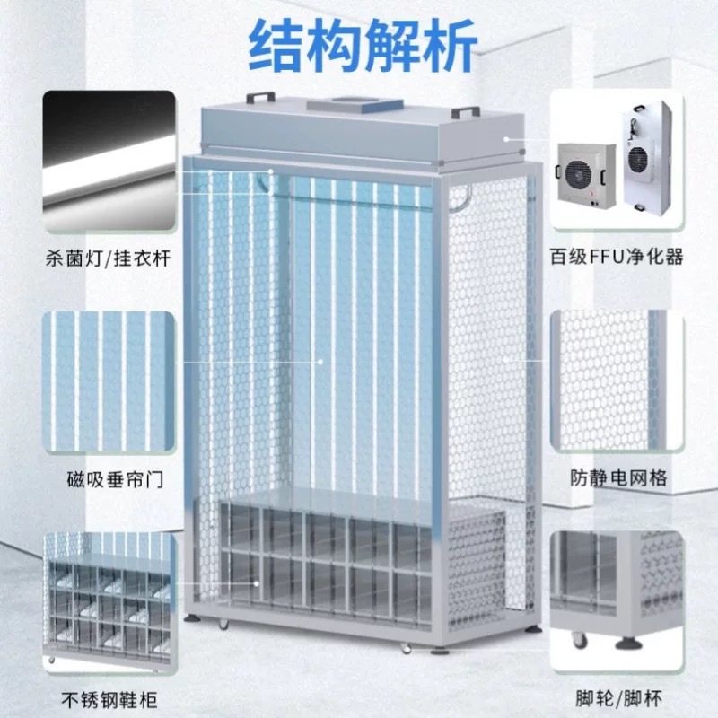 304无尘车间洁净衣柜百级无尘净化紫外线杀菌衣柜ffu净化除尘衣柜