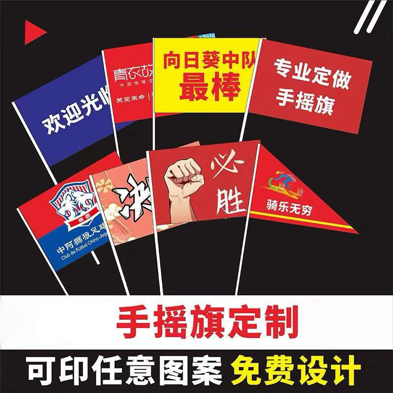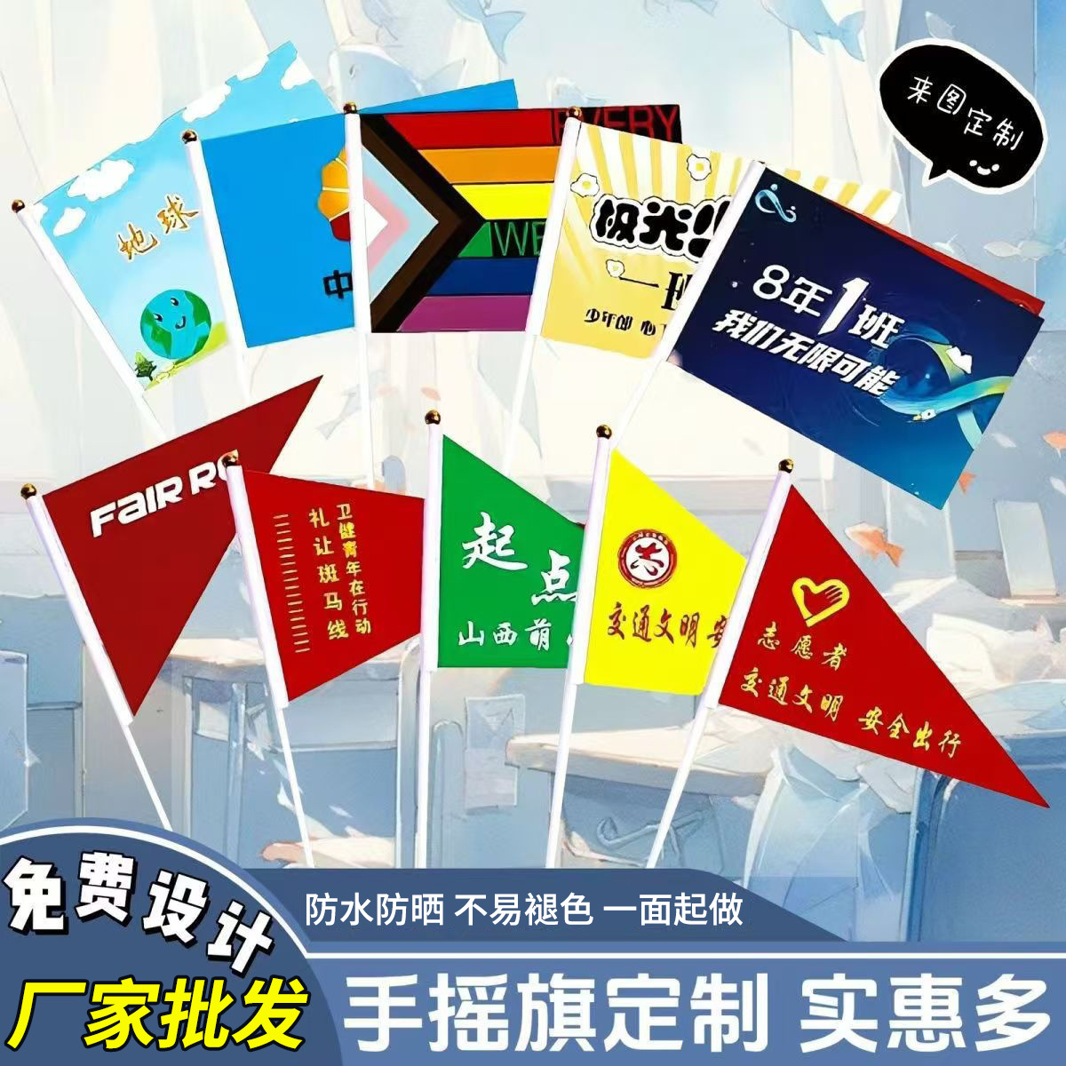 手摇旗明星队旗小学运动会定 制班旗手拿小旗子导游旗广告印字