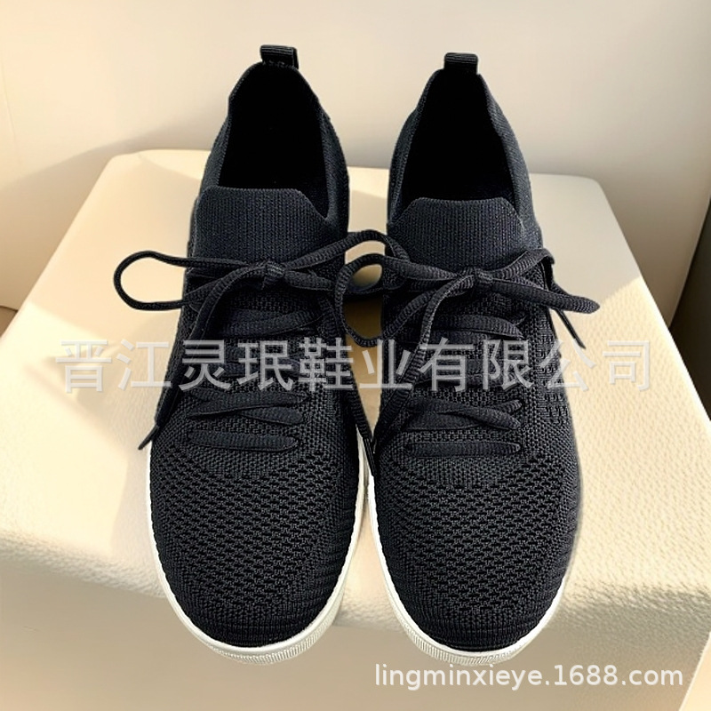2025厂家女款休闲运动鞋跑步鞋软底懒人鞋潮流飞织一脚蹬单鞋百搭