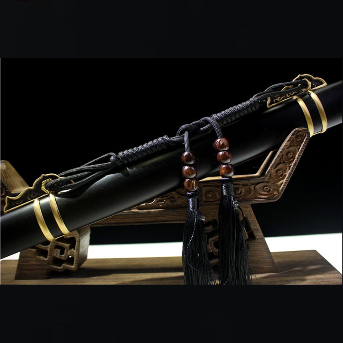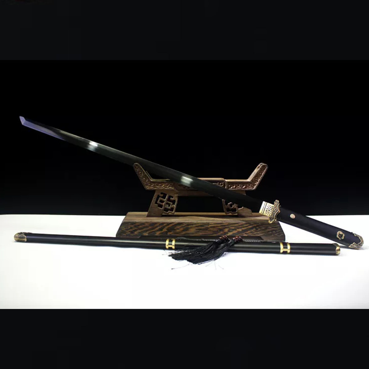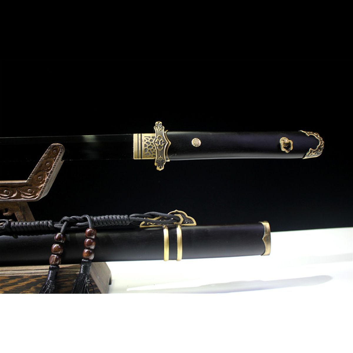 龙泉刀剑手工一体锻打纯铜乌木鞘高性能钢发黑简装唐横刀未开刃