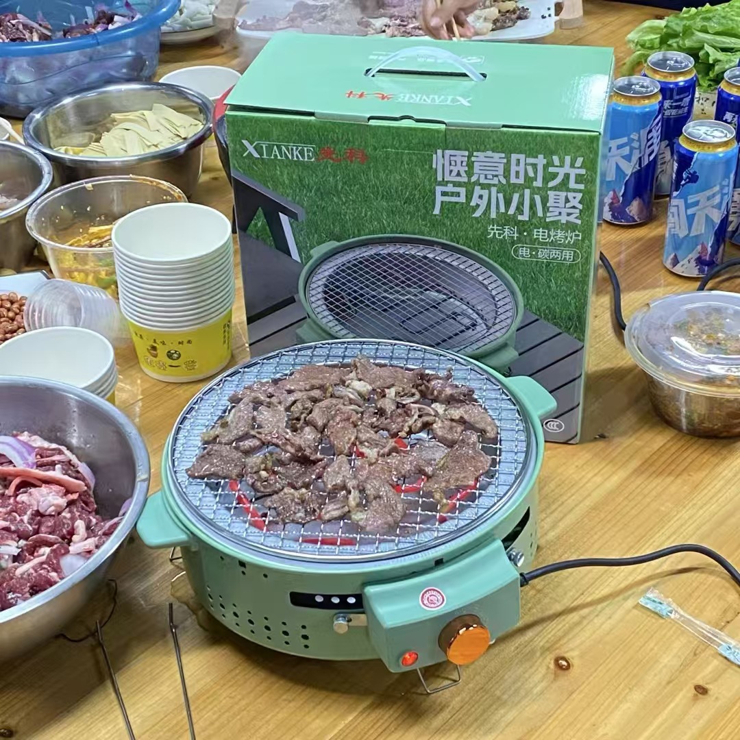 先科电烧烤炉炭烧两用户外碳烤炉圆形围炉煮茶烤肉烤盘户外便携