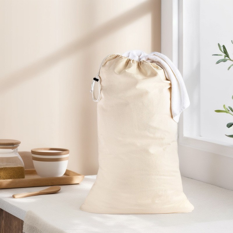 现货供应亚马逊洗衣袋自然色帆布大号家用洗衣袋脏衣服收纳袋