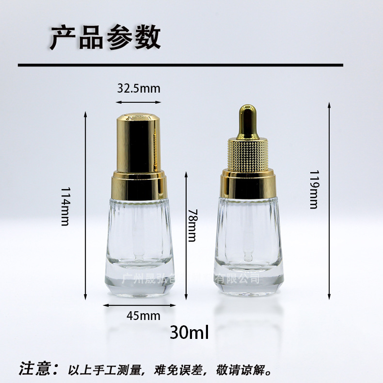 | 规格型号 | 30ml光瓶+配中圈电镀胶头;透明;玻璃 | 专用包装 | 化妆品包装 |