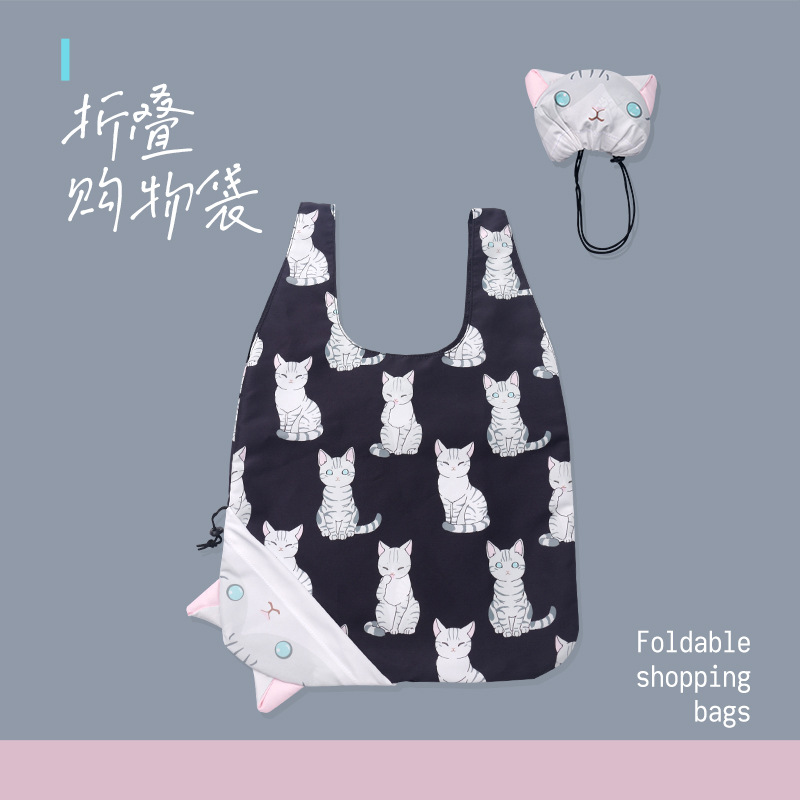 日式卡通手提拎便携环保收纳袋创意动物礼品环涤纶袋批发挂件轻便