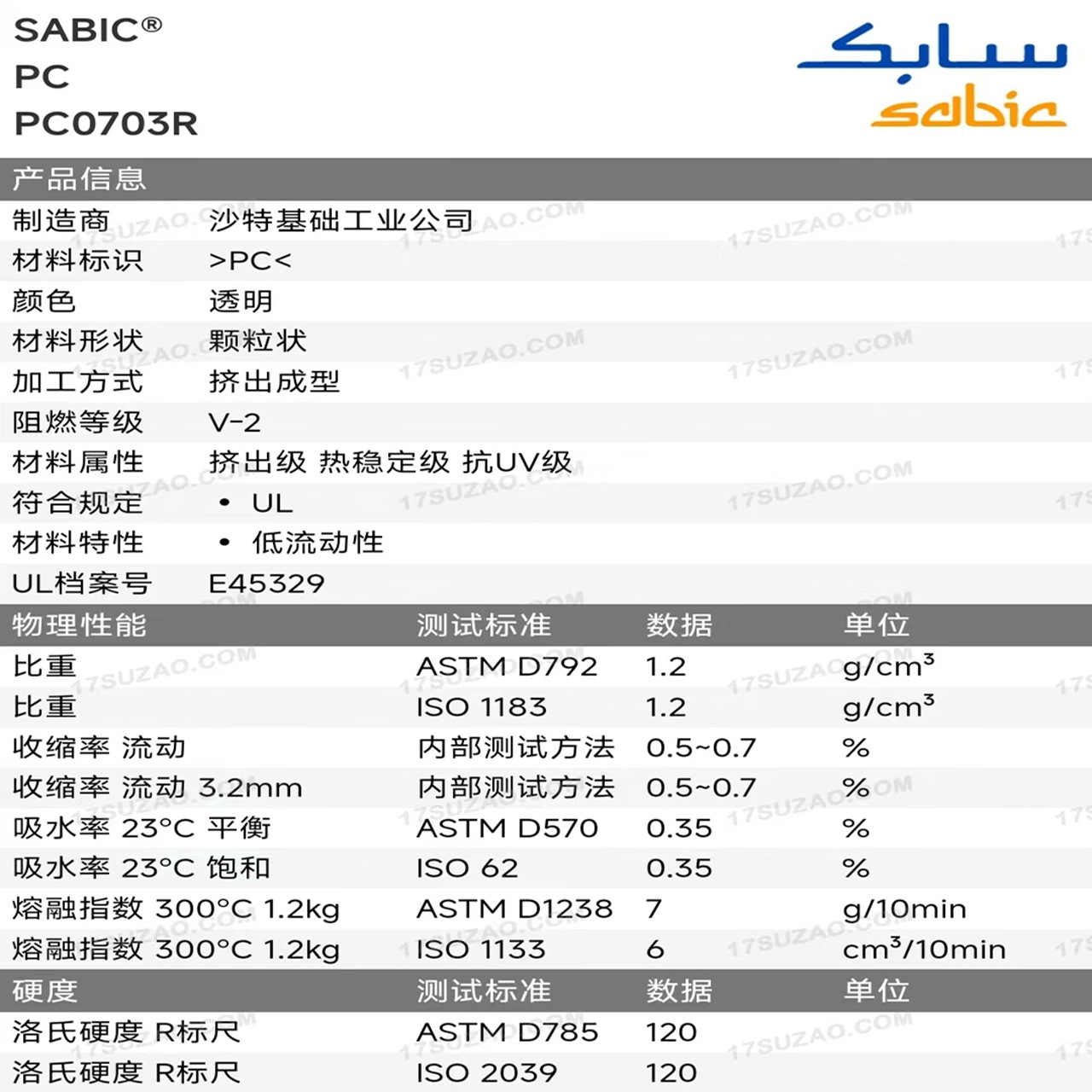 pc料沙伯塑料颗粒PC0703R沙伯新料1003R沙伯基础颗粒挤出管pc原料