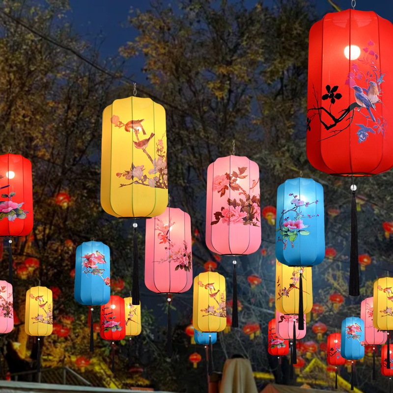 中式手绘烫画布艺灯笼彩色户外防水中国风街道景区商场婚礼挂装饰