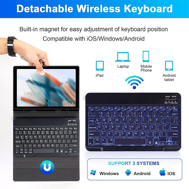 | 颜色 | 浅紫皮套+浅紫方帽背光键盘+鼠标 | 适用型号 | 三星Tab A8 10.5英寸(X200/X205) |