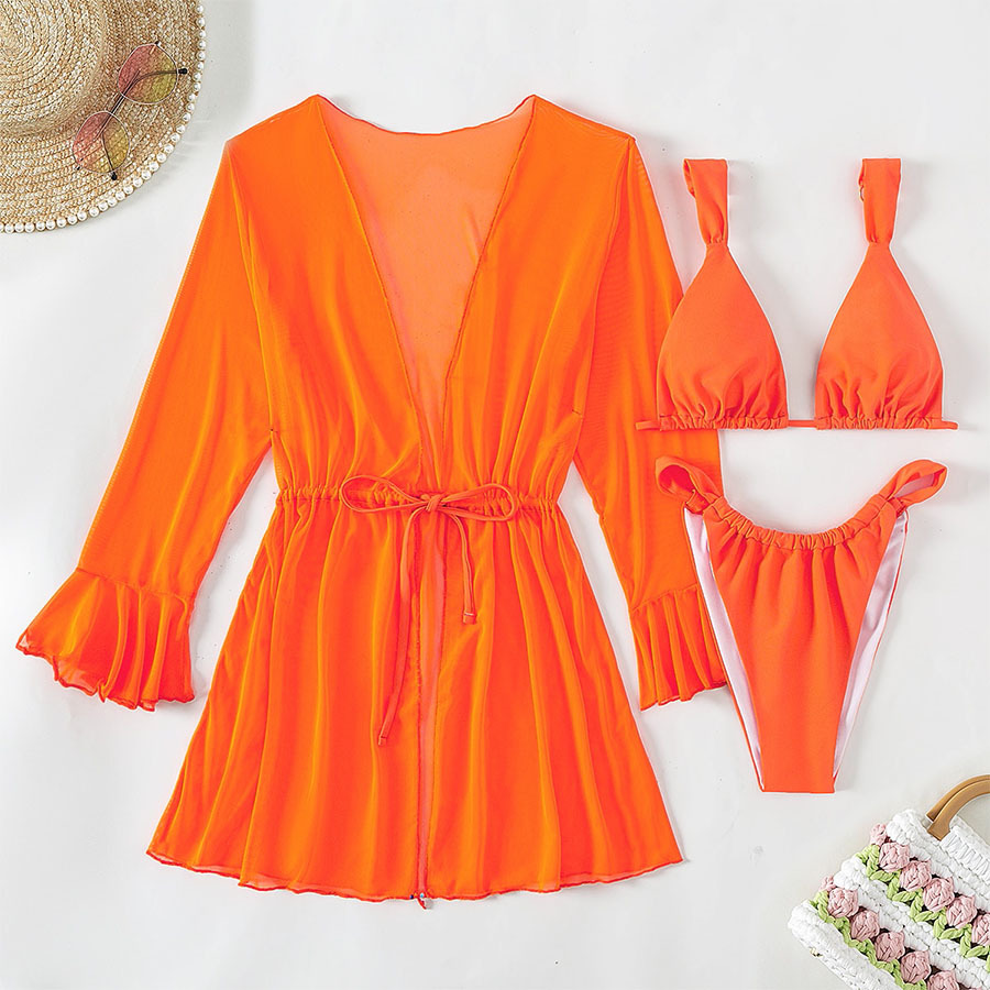 跨境欧美外贸纱裙罩衫bikini三件套沙滩性感泳衣亚马逊暴款泳衣