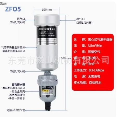 产品规格ZF05气源干燥器+自动排水器[(接10-12毫米软管)]