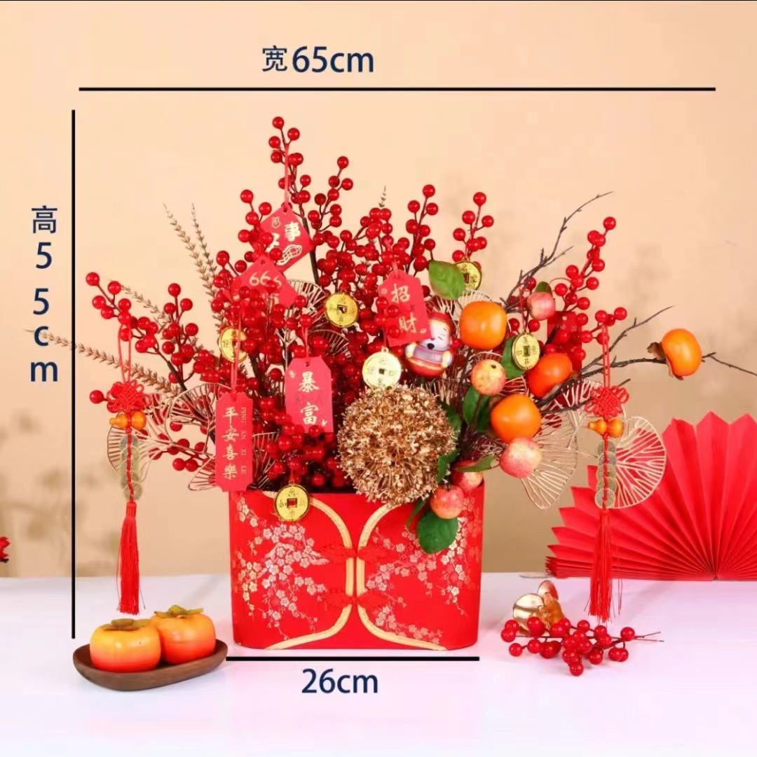 福桶抱抱桶新年喜庆家居摆设仿真花锦缎福桶插花客厅新房装饰