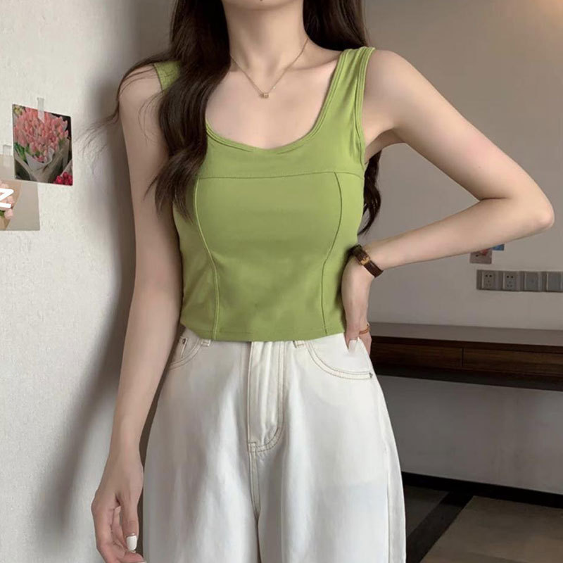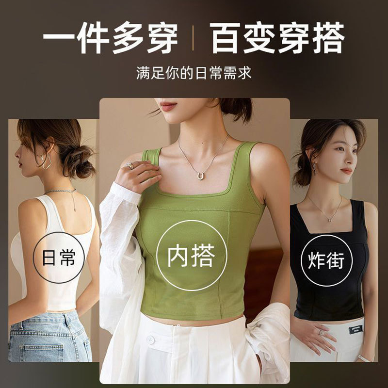 夏季外穿运动休闲固定杯背心上衣少女士裹胸宽肩带大U背长装内衣