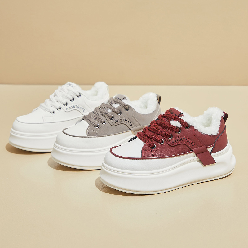 跨境外贸2025冬季加绒小白鞋新款韩版ins女学生厚底运动板鞋休闲