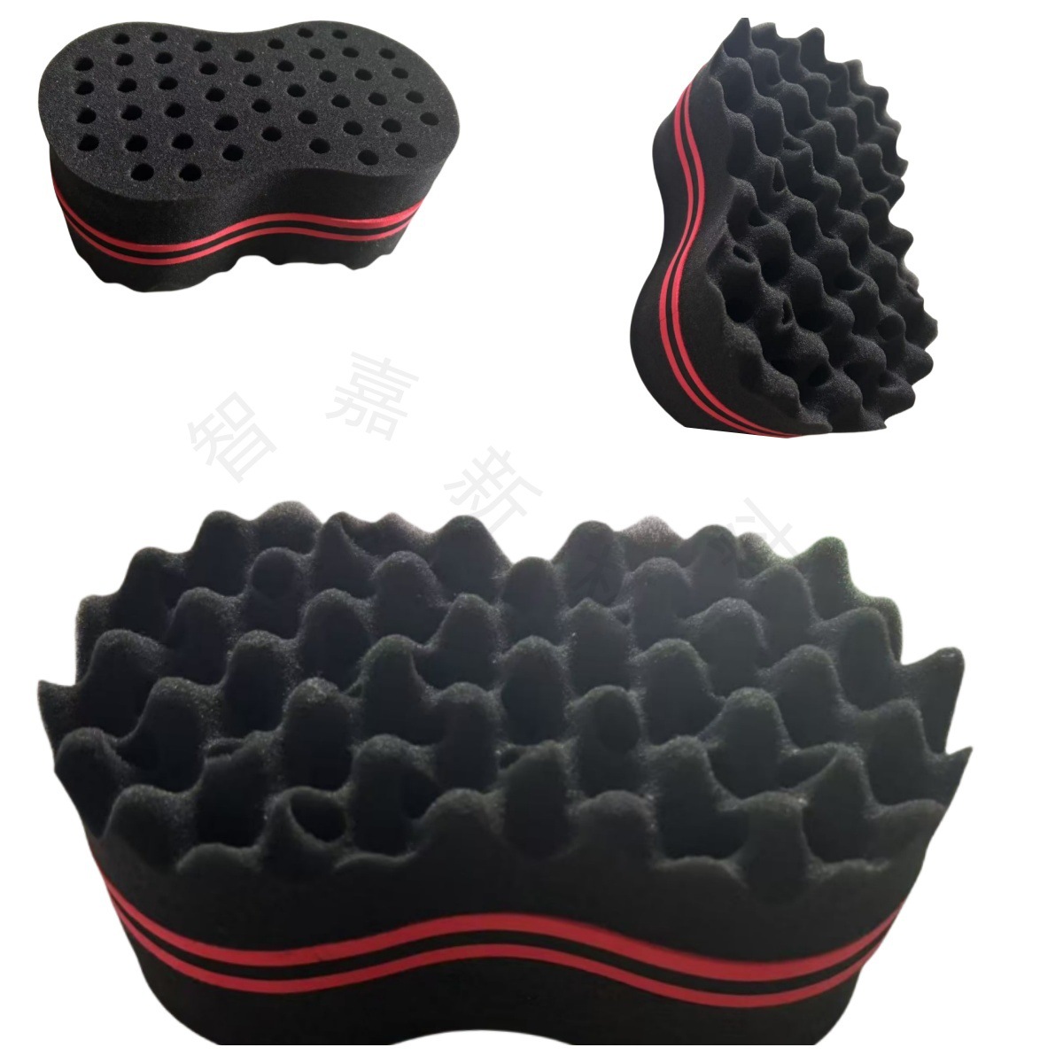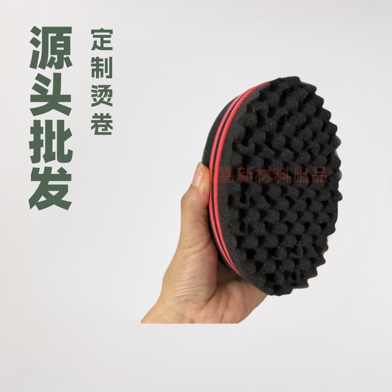 源头批发椭圆形小孔海绵烫卷发大孔美发海绵手套黑人烫海绵工厂