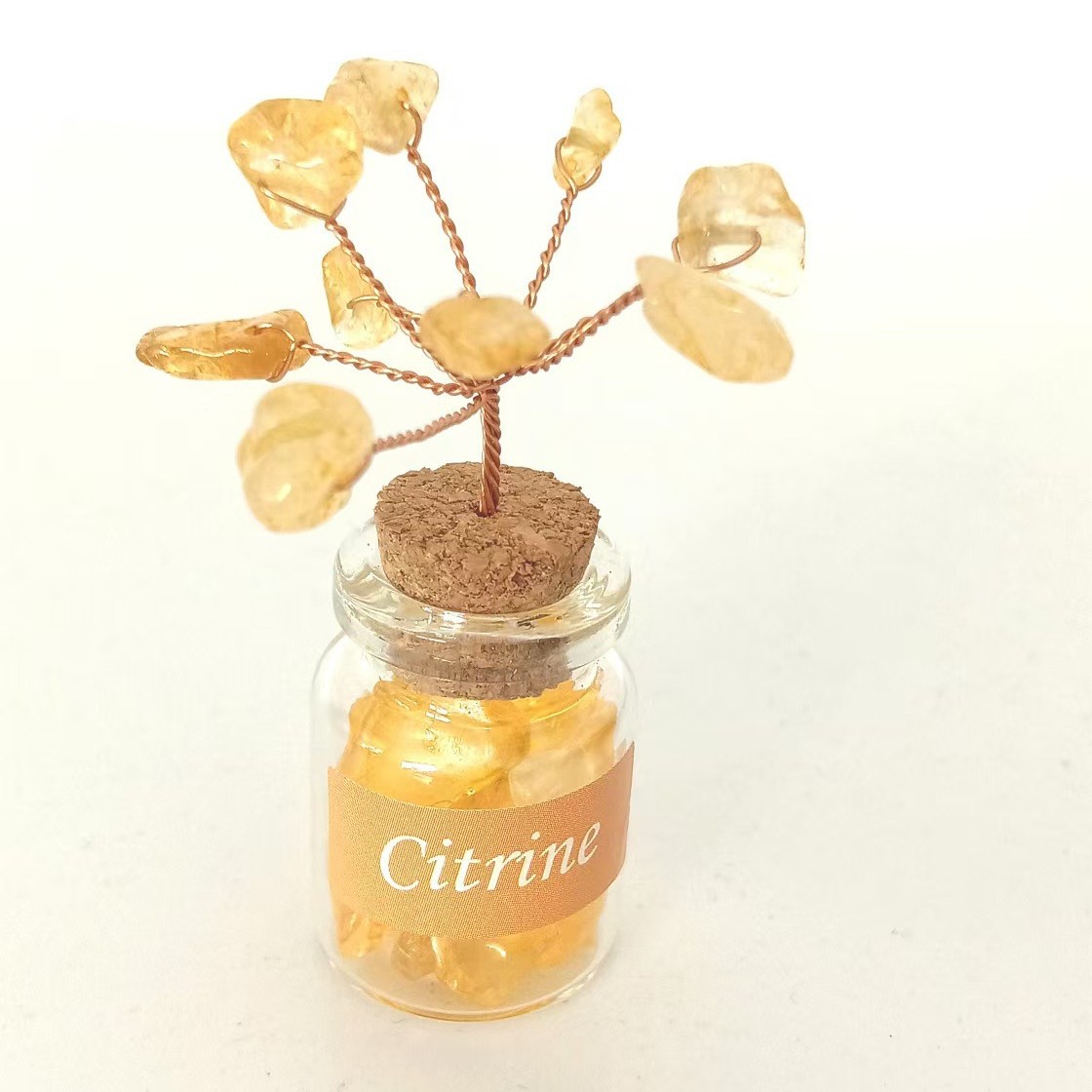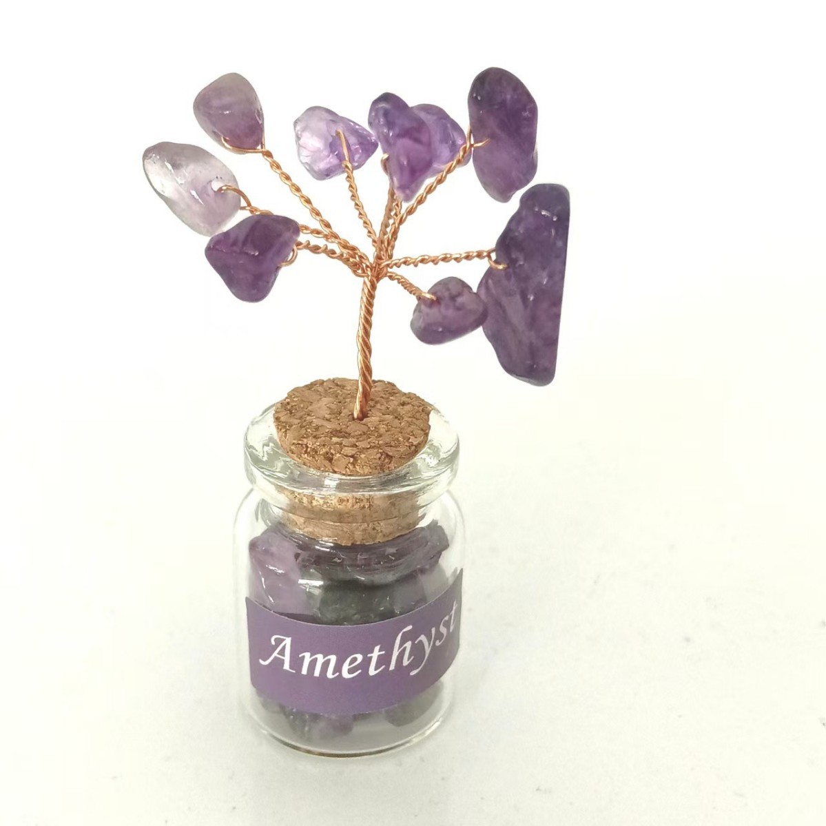 天然水晶碎石漂流瓶花树 七色宝石水晶漂流瓶工艺品 批发
