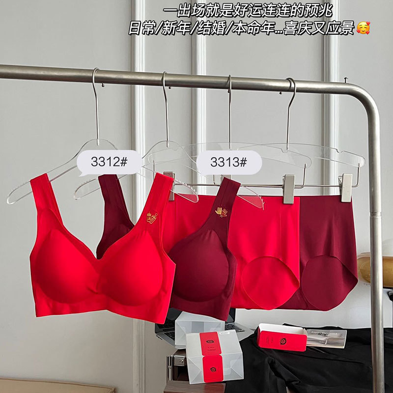 新款本命年红色结婚新娘喜事内衣内裤女套装礼盒装无痕文胸美背心