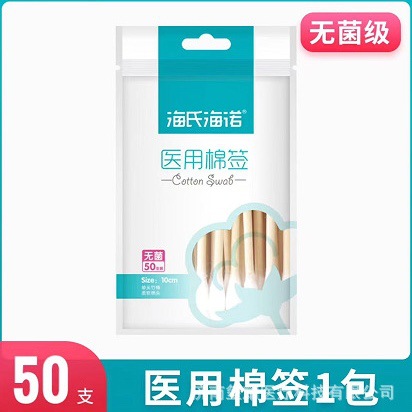 海氏海诺医用棉签10cm自封口棉棒医用家用护理BK05无菌医用棉签