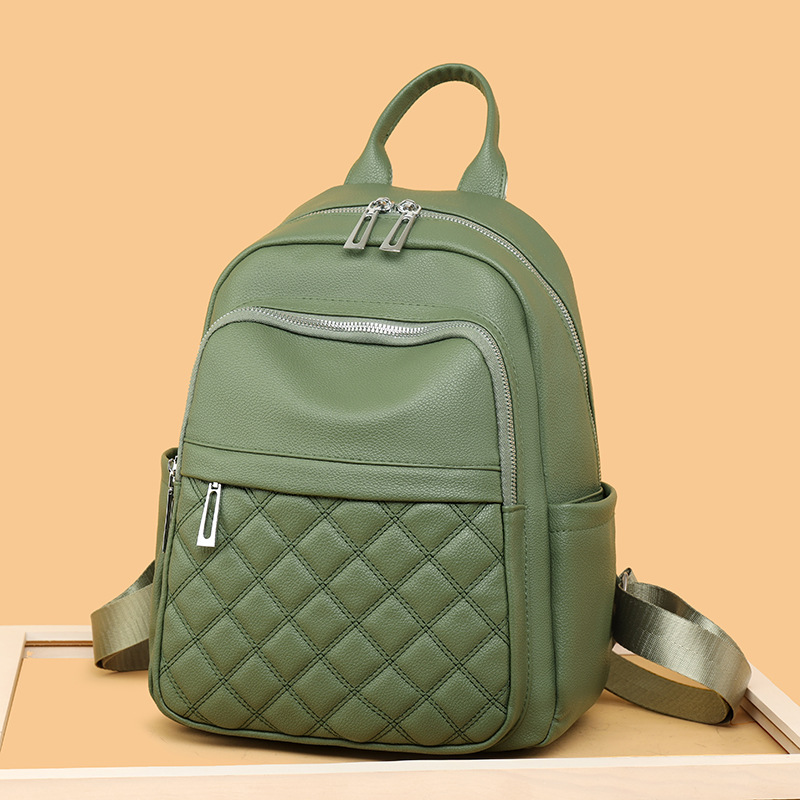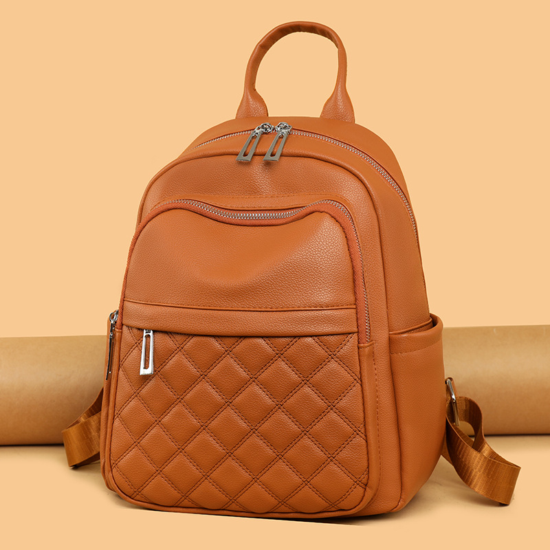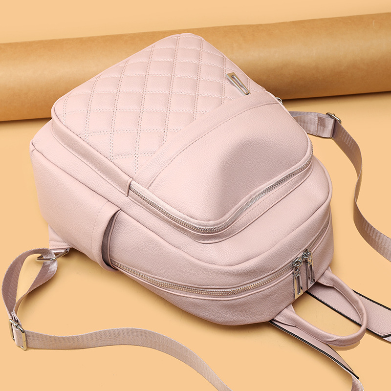 跨境韩版时尚百搭女双肩包2024新款休闲菱格外出旅行背包书包斜挎