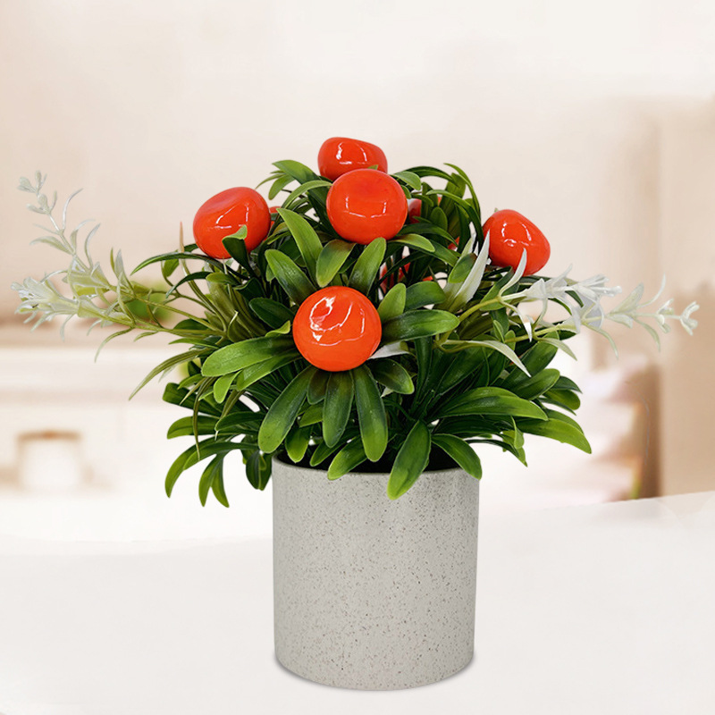 批发迷你辣椒橘子仿真盆栽人造水果小盆景9个发财果树桌面小摆件