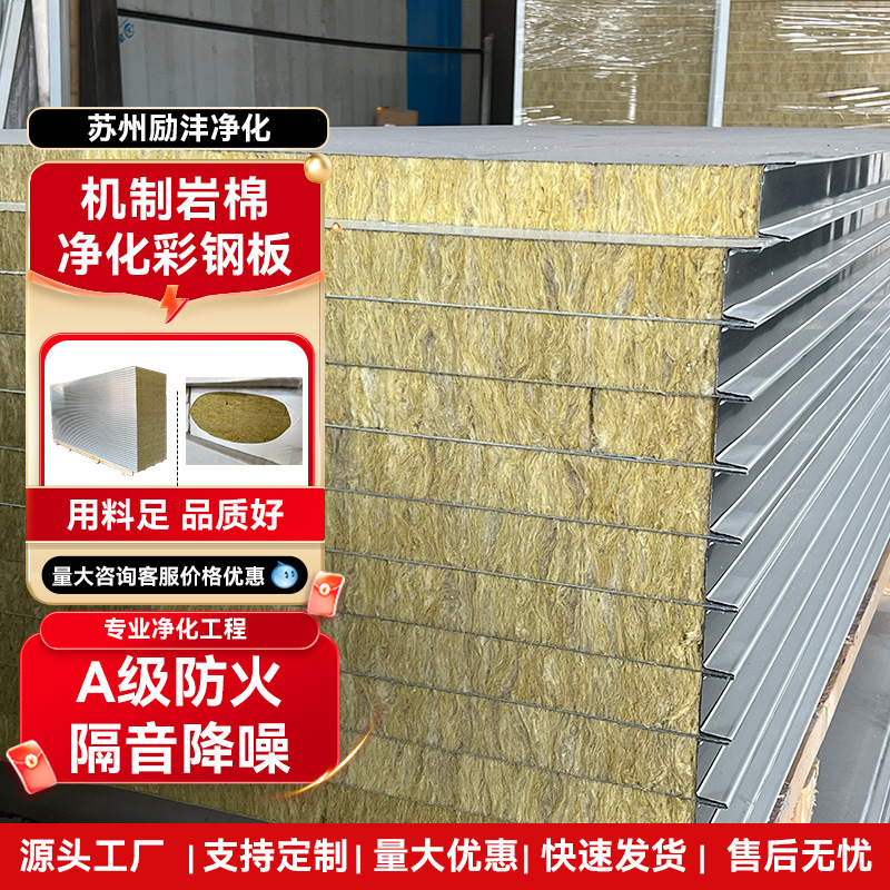 夹心彩钢板保温板隔断岩棉洁净车间隔热吊顶隔墙板防火净化板