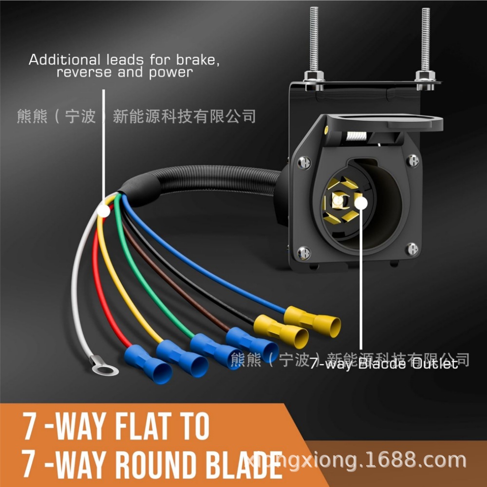 跨境美式拖车线4+7转换器房车适配车灯连接线美规插头房车7芯拖车