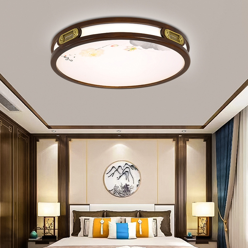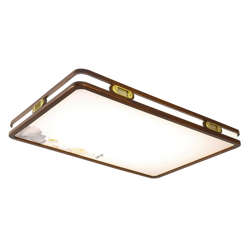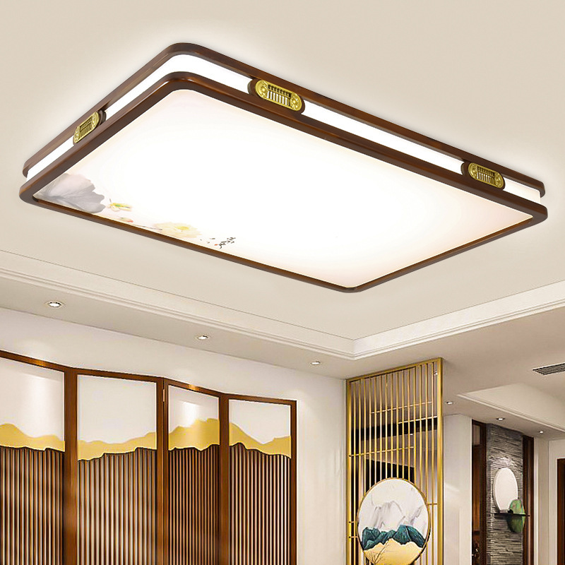 新中式吸顶灯中国风实木客厅灯套餐led长方形餐厅卧室木质灯具
