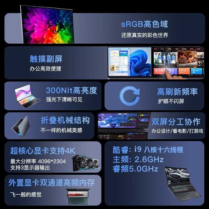 双屏笔记本电脑16寸+14寸触摸屏 外接独立显卡电竞设计游戏手提本