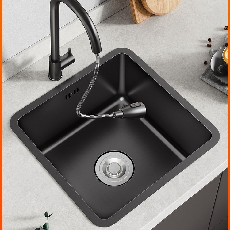 黑色纳米304不锈钢水槽厨房小号方形洗菜盆台下单槽吧台岛台阳台