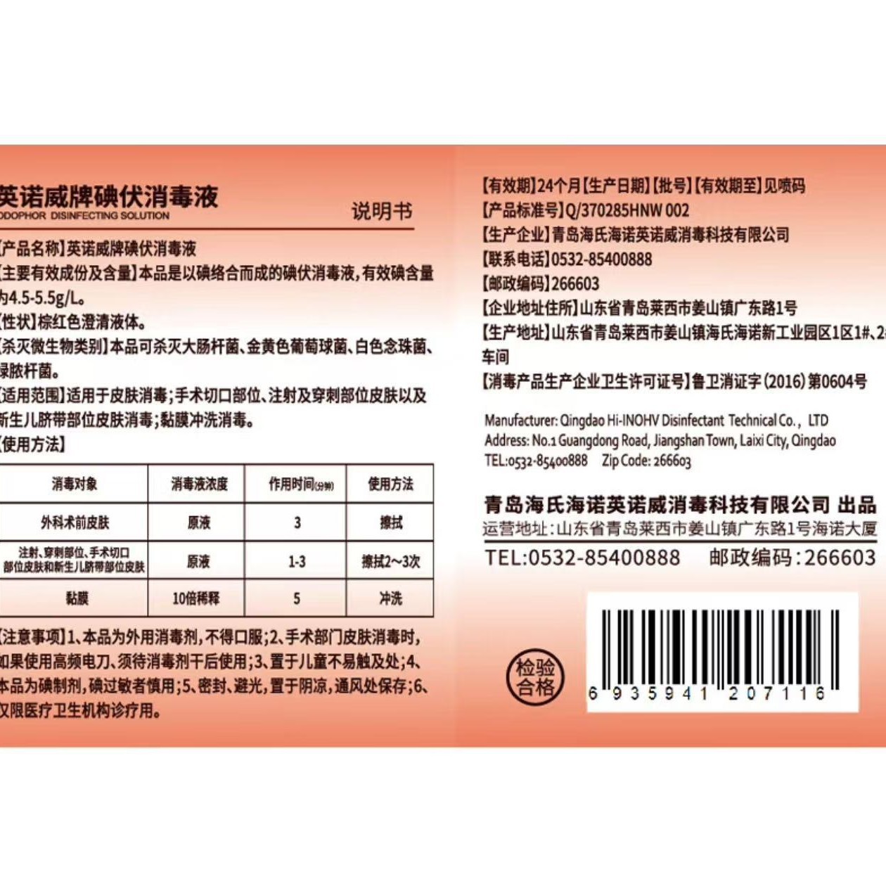 颜色分类英诺威碘伏消毒液(简装)100ml/瓶—1瓶