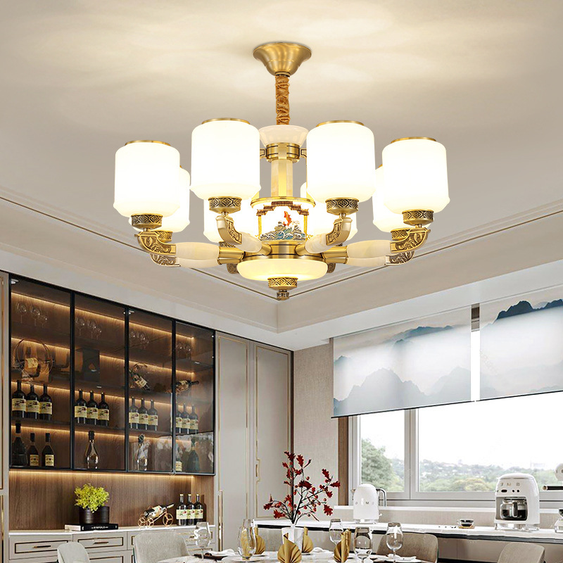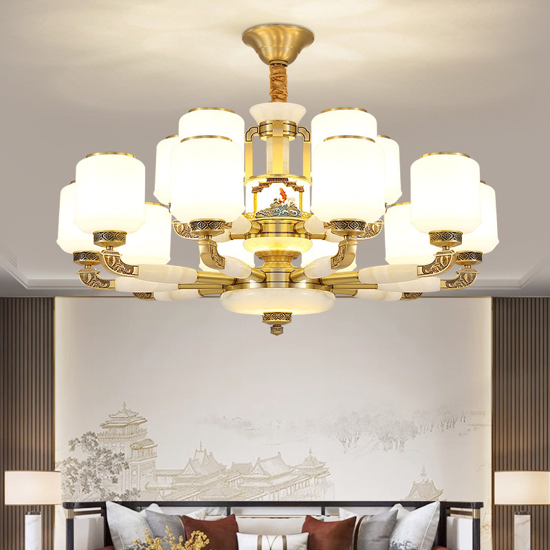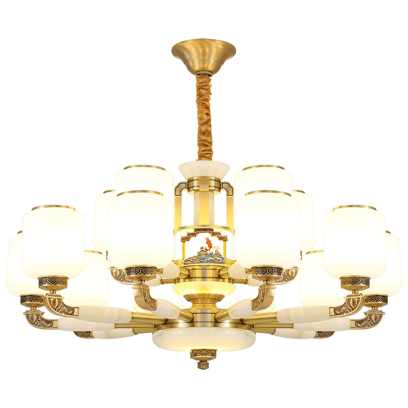 新中式全铜玉石别墅大吊灯轻奢大气客厅灯中国风复式楼餐厅卧室灯