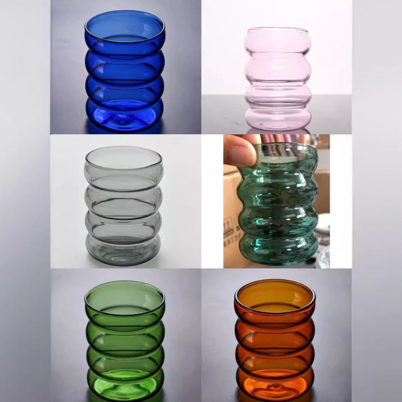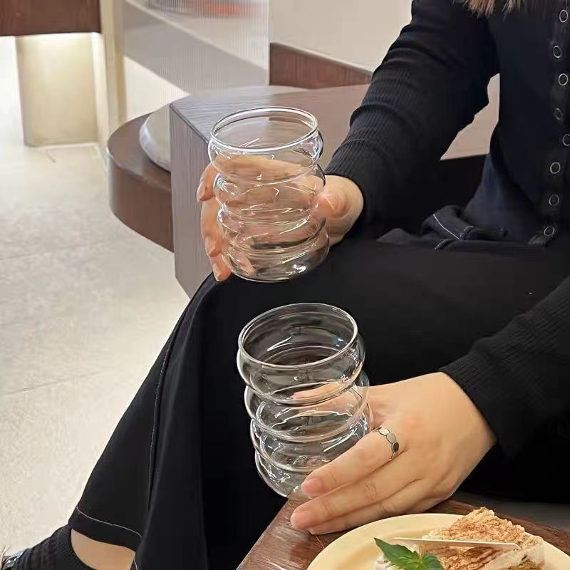 毛毛虫杯波纹彩色玻璃杯手工吹制咖啡牛奶杯可爱螺旋圈圈杯杯子