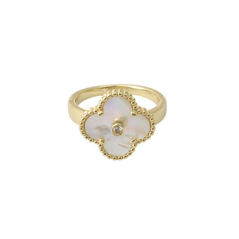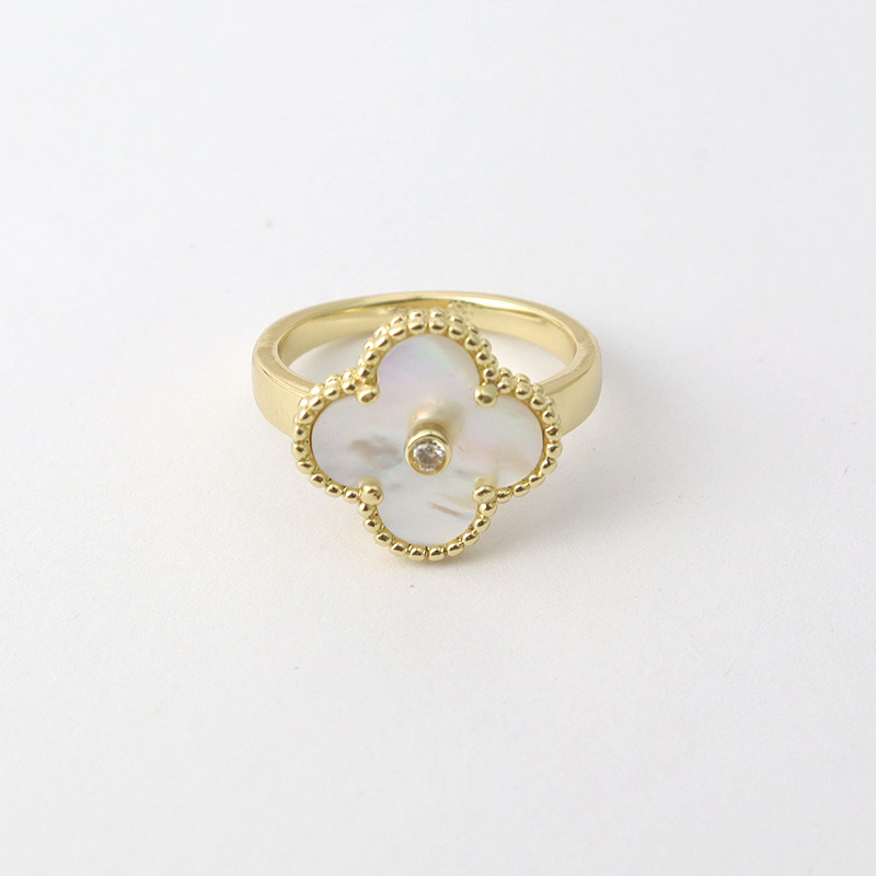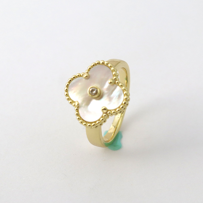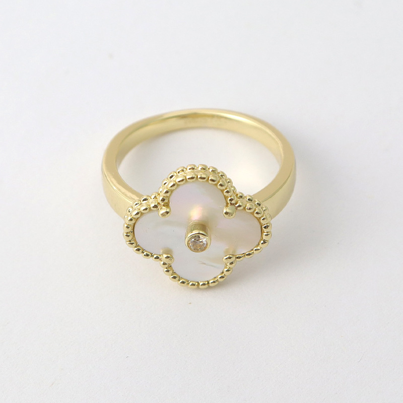 不掉色精致高版本幸运四叶草戒指女款天然贝母满钻戒环厂家批发