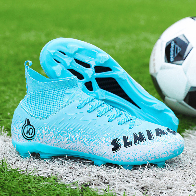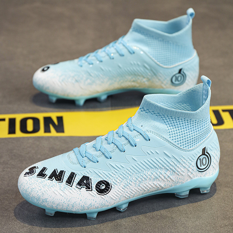 跨境高帮足球鞋TF碎钉田径运动鞋长钉成人学生比赛草地训练球鞋男