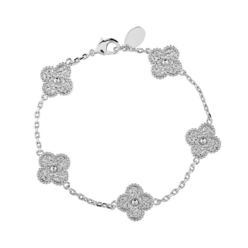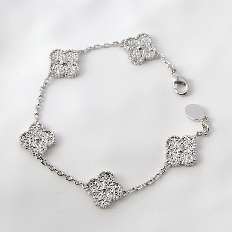 厂家供应四叶草五花手链可替换菱形扣头可镶嵌贝壳潮流轻奢手链