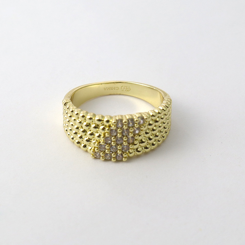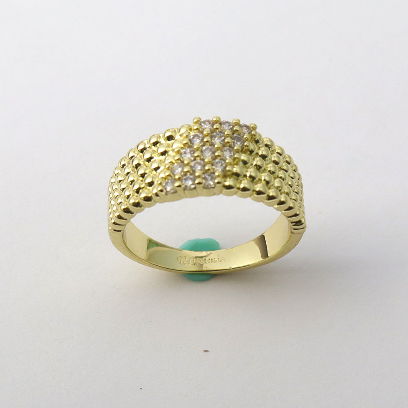 2024年新款时尚饰品嘻哈大气真空电镀18k圆珠排钻男士戒指批发