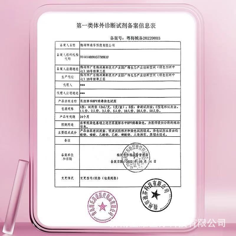 规格亚济药业 HPV病毒染色试剂C型号(吸尿式)1人份/盒