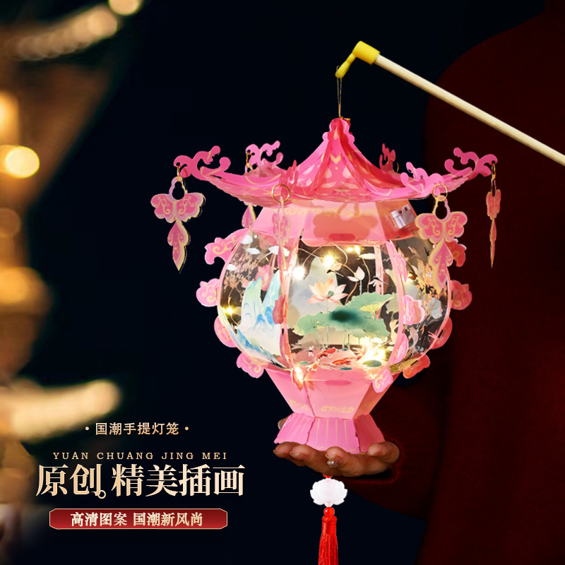 新年古风灯笼花坛花灯汉服手工diy花灯手提灯笼儿童发光玩具