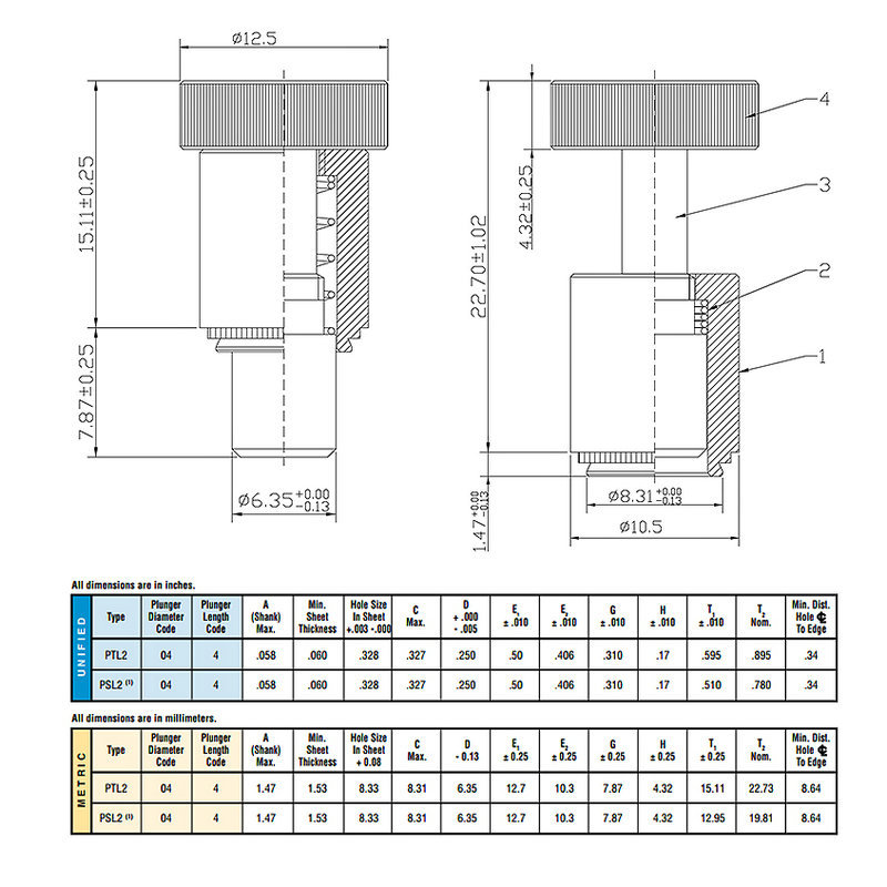 PTL2-04-4 弹性伸缩圆柱定位销压铆紧固件松不脱螺钉弹性柱塞铆钉