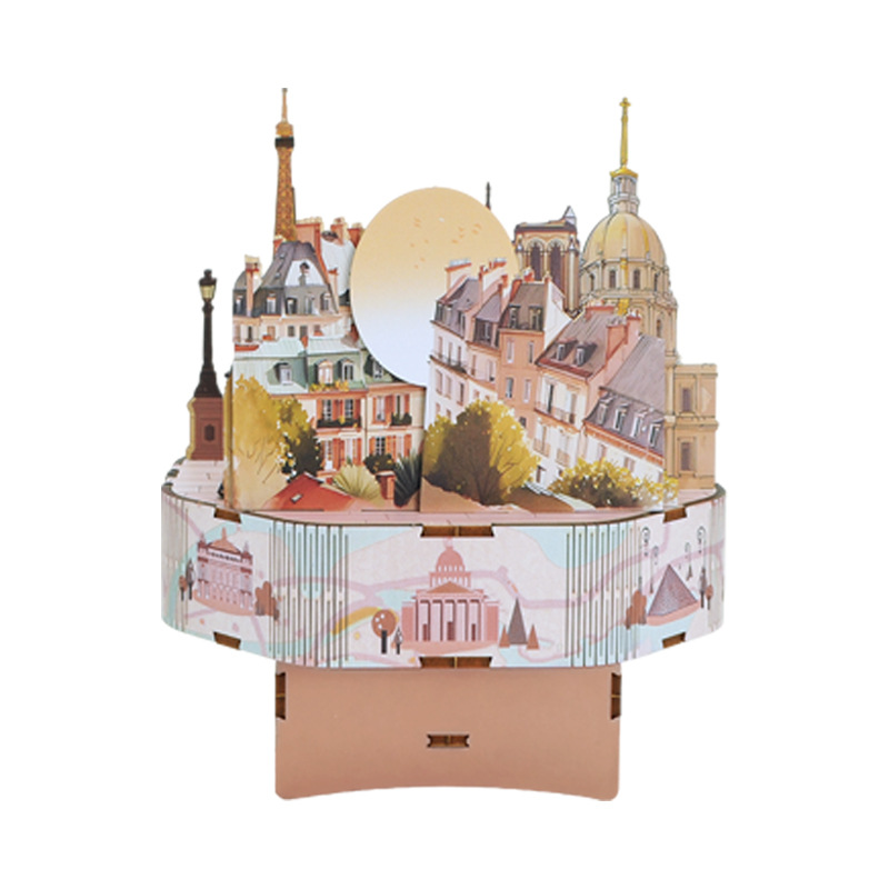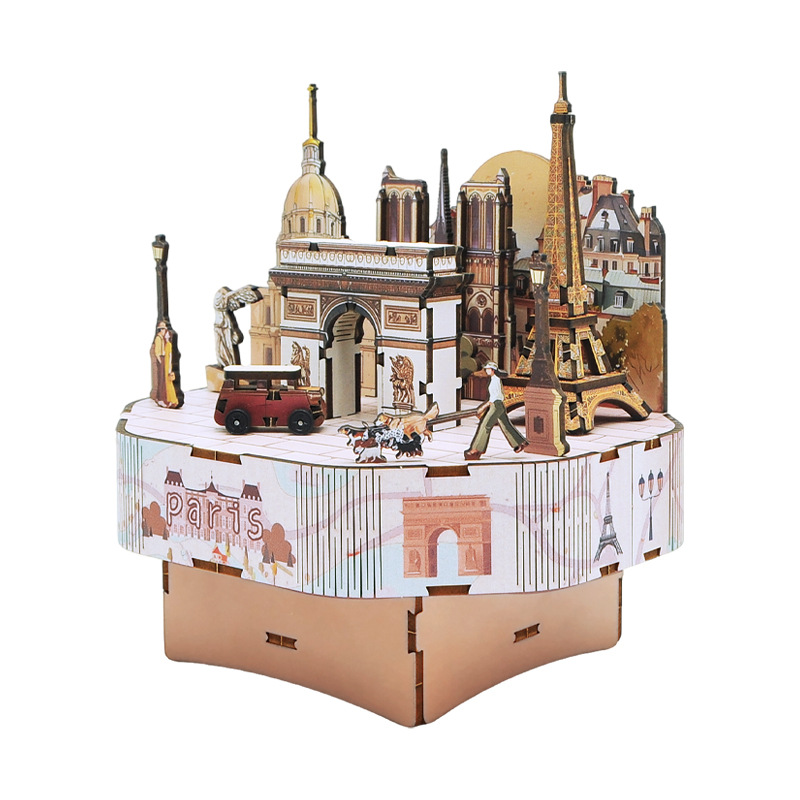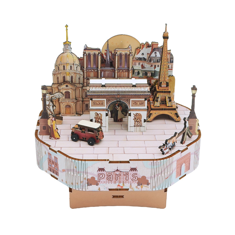 跨境文创巴黎音乐盒3D拼图动态八音盒地标纪念品手工DIY礼物拼装