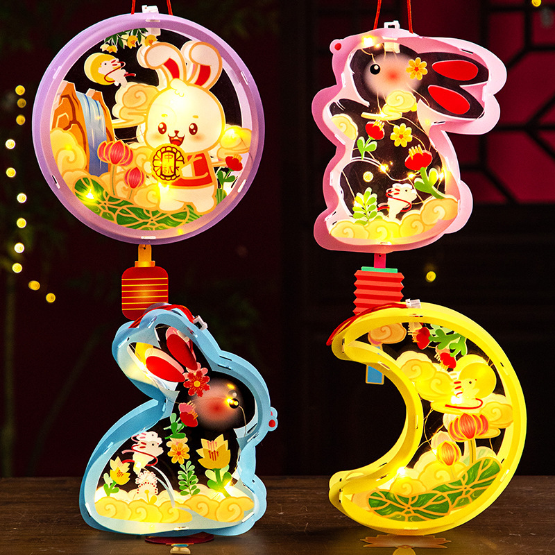 中秋节手提灯笼儿童手工diy玉兔花灯材料包中秋古风发光兔子灯笼