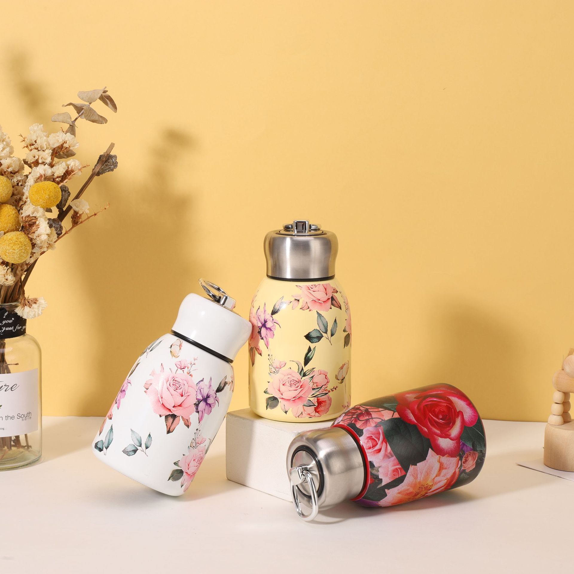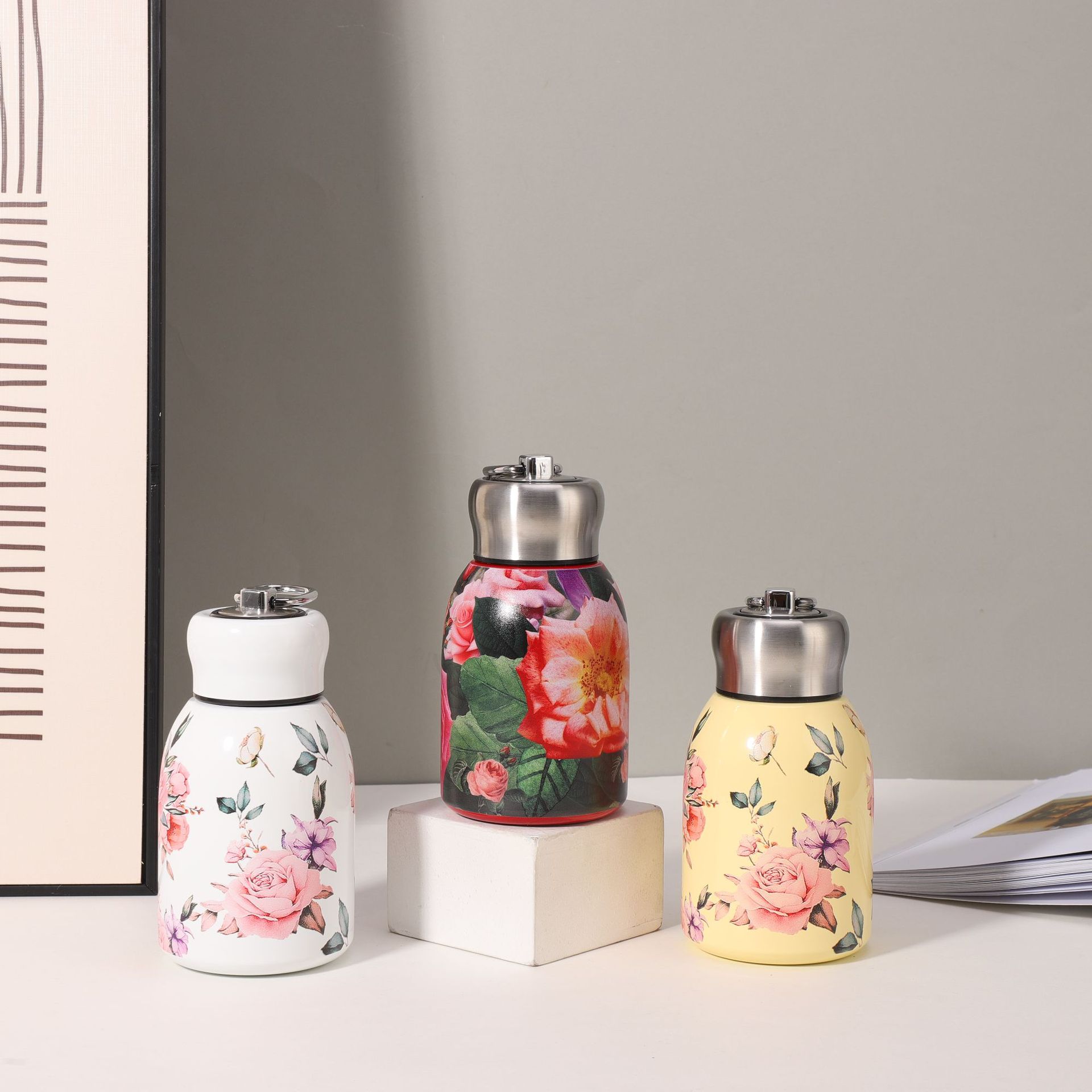 304不锈钢保温杯迷你小胖丁泡茶杯玫瑰花户外提手水杯便携礼品