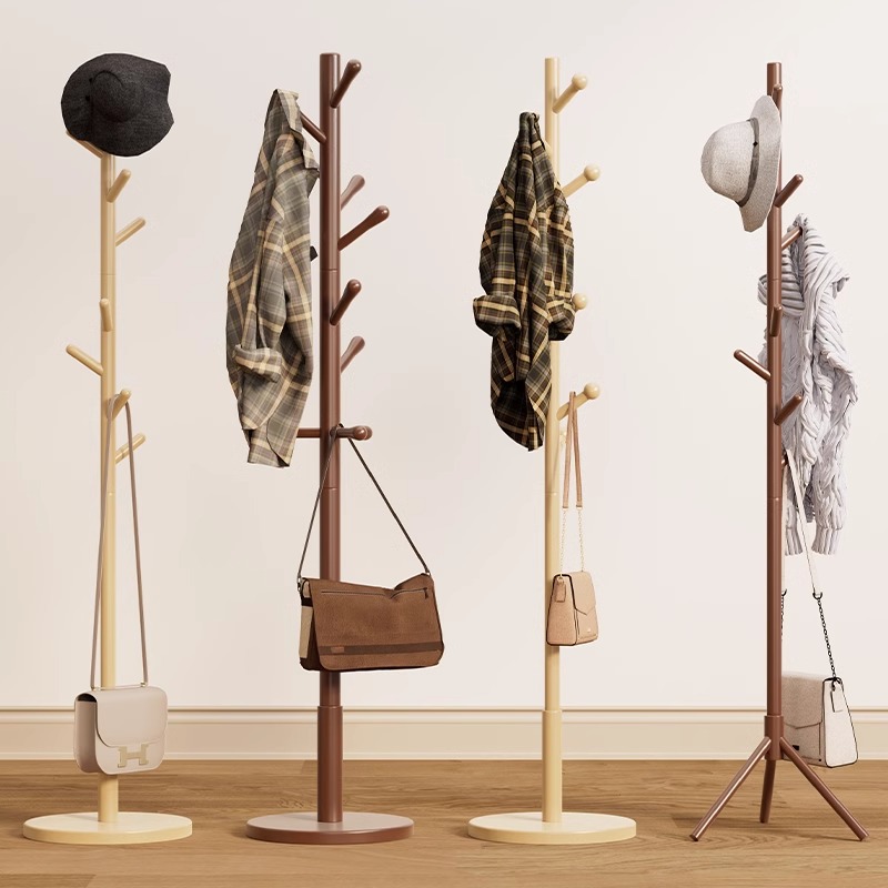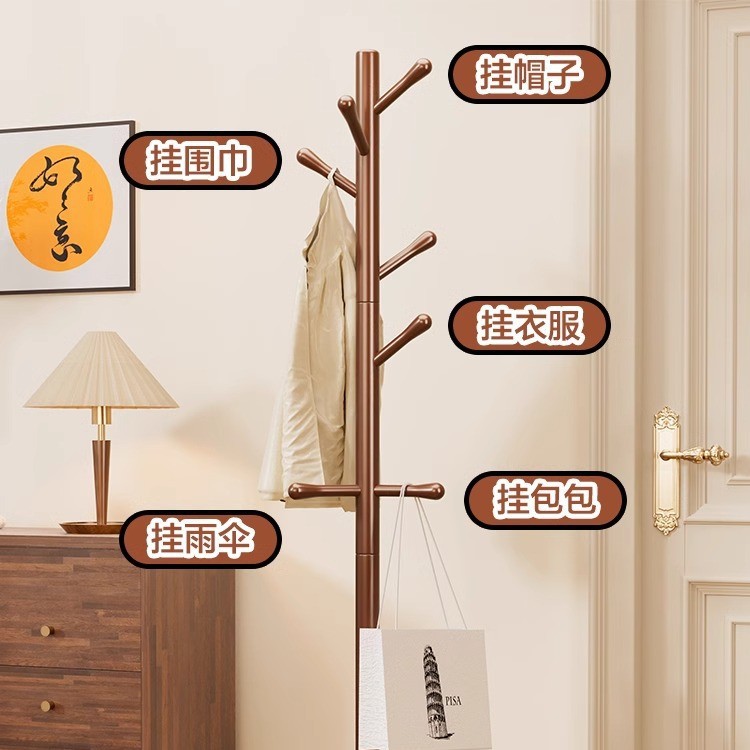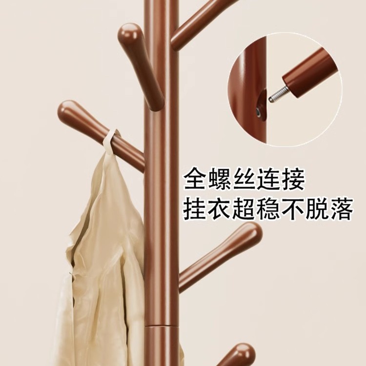 实木衣帽架落地卧室家用简易立式挂衣架加粗稳固优雅客厅圆盘底座