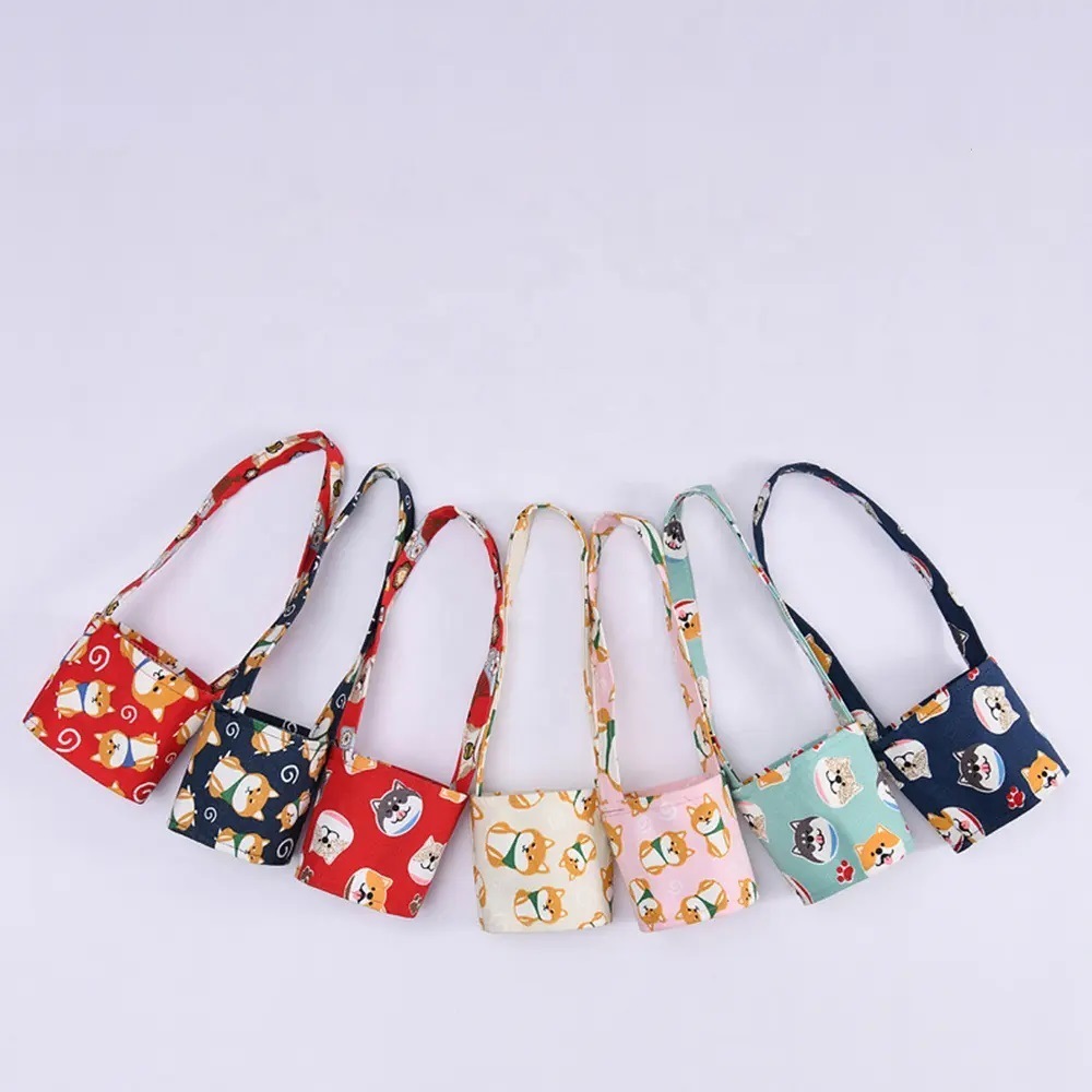 棉帆布手提杯套 柴犬奶茶袋 咖啡杯架 饮料外卖打包袋 印花奶茶套